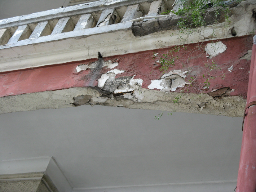 濟南市郵政局北二樓,建于1919年,兩層磚混結構,由于該建筑物使用年限接近100年,結構構件和非結構構件均有不同程度的損壞。按甲方要求,僅對結構的安全性及抗震性能進行復核,并對相關構件進行承載力復核和加固設計,屬保護性修繕設計范圍。