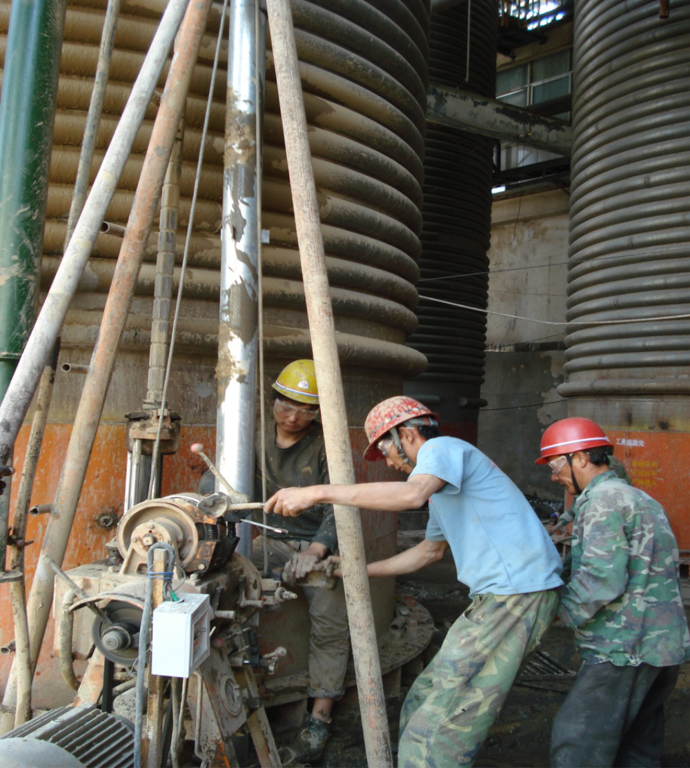 五蓮斯比凱可(山東)生物制品有限公司發酵車間10個罐體在生產過程中產生的動荷載較大,引起罐體發生較大搖動,嚴重影響了生產的進行。為保證罐體的正常運行,由山東建筑大學工程鑒定加固研究所對其進行加固設計,采用微型樁加固罐體基礎。每個罐體基礎用10棵微型樁進行補強,新微型樁樁頂用冠梁與原來承臺相連接,增加其整體性。本次加固工程布置的微型樁共計100棵,整個工程由山東建固特種專業工程有限公司施工。加固后罐體在重新投入生產運營后,幾乎未發生由于基礎振動引起的變形,說明了我單位設計的安全合理性和施工的高質量。