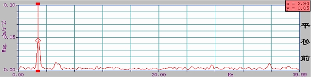 平移前的測試結果:根據實測的實時譜曲線,平移前二層樓面振動測點的主頻為2.84HZ(振動周期0.35s)。