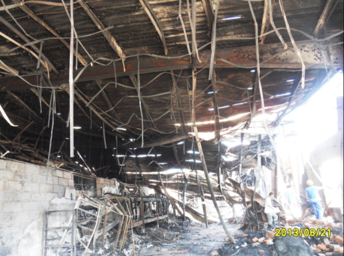 2013年08月17日上午9:15左右發生火災,當天下午1:30左右火災被消防隊員熄滅,起火原因尚不明確,主要可燃物為配件表層橡膠。