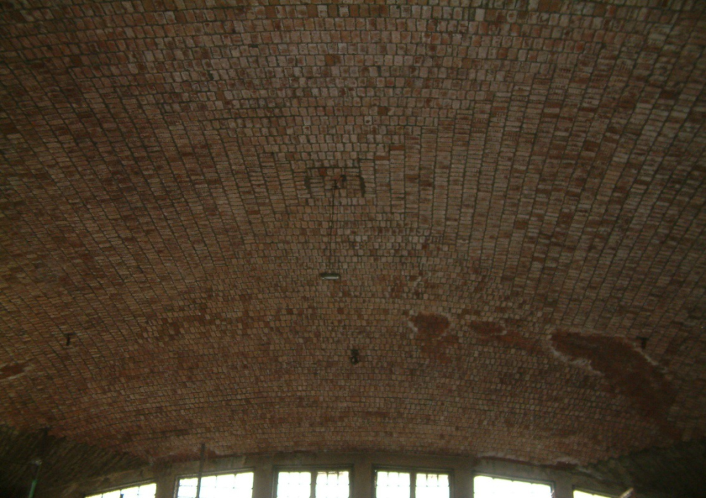 該建筑于1972年竣工,距今使用已近40年。據悉,該禮堂系現存少數幾座“磚砌雙曲扁殼屋蓋結構建筑”之一。受濟南城建工程公司委托,我院對該禮堂主體結構的安全性及耐久性進行了檢測鑒定,給出了“經適當加固修繕可繼續使用”的鑒定結論,并針對該屋蓋結構特點提出了加固施工措施和施工中應注意的問題。