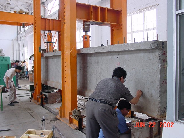 聊城某廠房預(yù)制吊車梁,在施工階段發(fā)現(xiàn)梁表面出現(xiàn)裂縫,運抵我所結(jié)構(gòu)實驗室對其進行加載試驗。