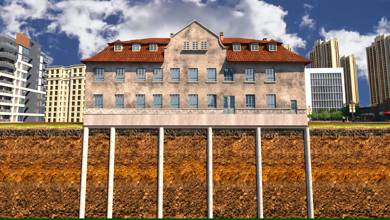 平移建筑物時,一般采用托換結構對建筑進行托換,已具備進行地下增層的基本條件。在新址建設完成地下室豎向構件,將建筑物平移到新址以上完成就位連接,通過逆作法即可實現地下增層。在采用軌道方式進行建筑平移的工程中,濟南宏濟堂平移等工程,已有地下增層的實踐。